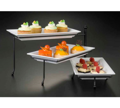 Ironworks™ Stand Set, 3-tier, includes: one 17-3/8"L x 7-1/2"D x 10"H wrought iron stand and three 14-1/4"L x 7-1/2"W melamine platters (hand wash only)