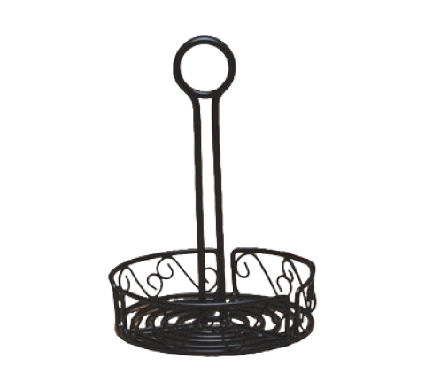 Ironworks™ Condiment Rack, 6-1/4" dia. x 9"H, round, center handle with slot for table number (not included), scroll design, black wrought iron (hand wash only)