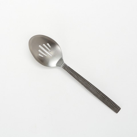 Serving Spoon, 10"L, slotted, wavy aged stainless steel