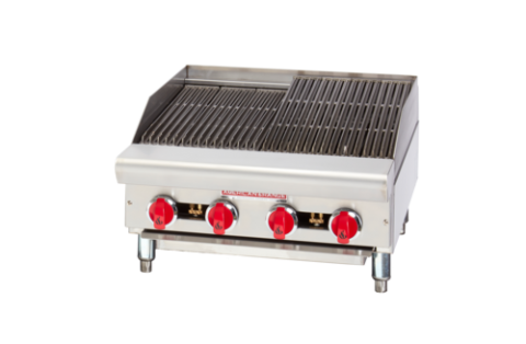 Charbroiler, gas, countertop, 24" wide, (4) burners, 4" adjustable legs, heavy duty reversible cast iron grates, 21"cooking depth,manual controls, removable radiants & full width grease pan, stainless steel front & sides, 60,000 BTU, ETL, Made in USA