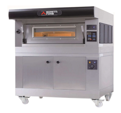 Moretti Forni Pizza Oven, deck-type, electric, (1) 38"W x 41"D x 7"H deck, (9) 12" or (4) 18" pizza capacity, (20) customizable programs, 840°F max operating temperature, timer, (1) stainless steel bottom-hinged door, halogen lighting, refractory brick baking chamber (entire camera), stainless steel construction,10.5kW, CE, ETL, ETL-Sanitation, Made in Italy (MPN AMA0C01S)