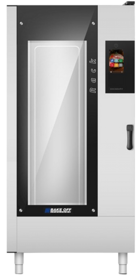 BakeOff Italiana Combi Oven/Steamer, electric, boiler-free, 33-1/2"W x 37-9/1"D x 73-1/5"H, (16) 18"x26" or 46x66 cm trays, 2-11/16" shelf spacing, AISI 304 Stainless-Steel Rounded Cooking Chamber Construction, Wi-Fi enabled control with steam/convection/combi cooking modes, 300 Preset recipes, up to 700 more recipes can be stored on unit, USB connection, Multipoint core probe, programmable delayed-start and cool-down, Double low-emissive glass thermal insulation on door, high efficiency LED lighting, door hinged right, stainless-steel construction, 518°F (270°C) max operating temperature, Multi-timer function for multiple and mixed cooking, Automatic control of the cooking level & load, CE, ETL, ETL-Sanitation, Made in Italy