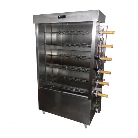 Metal Supreme Rotisserie Oven, liquid propane gas, (6) stainless steel V spit skewers, (30) chicken capacity, (30) chickens/hr average productivity, tempered-glass sliding doors, stainless steel front, sides & interior cavity, (2) stainless steel grease drawers, 3” casters, 90,000 BTU, 110v/60/1-ph, 3.6 amps