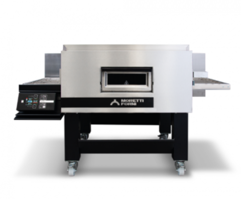 Moretti Forni Electric Conveyor Pizza Oven, 81"W x 60"D x 48-1/4"H, 25-3/4"W belt, single deck, (100) 13" pizzas/hour or (38) 18” pizzas/hour, stand included, 45 sec. to 20 minutes belt control speed, Air blowing system using 2 stainless steel fans independently motorized, 608°F max operating temperature, color multi language display, (100) customizable programs, stainless steel construction, 17.8kW, cETLus, ETL-Sanitation, Made in Italy (MPN TT96E1/S)