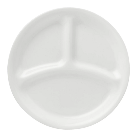 Essentials Divided Dinner Plate, round, 8-1/2"Dia x 3/4"H, Vitrelle® glass, white, (24 each per case)
