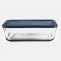 Food Storage Container, 11 cup, 9-7/8"L x 7-7/8"W x 3-1/8"H, rectangular, blue plastic lid, fully tempered glass, clear (2 each per case)