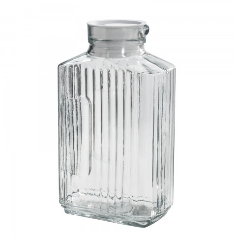 Bistro Pitcher, 64 oz. (2 qt.), 10-1/4"H, 5-7/8" dia., with white lid, glass, clear (4 each per case)