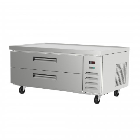 (19056761) Chef Base Refrigerated Equipment Stand, 53" W, side-mounted self-contained refrigeration, electronic control, temperature range 32° F to 41°F, (2) drawers, (2) 12" x 20" pan capacity per drawer, (pans sold separately), marine edge top, stainless steel construction, 5" casters (2 with brakes), R-290 hydrocarbon refrigerant, 1/6 HP, cETLus, ETL Sanitation