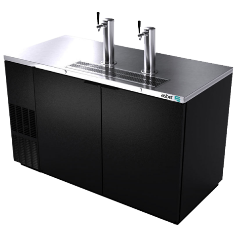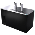 (19073729) Direct Draw Beer Cooler, two-section, 59-1/2"W x 28-5/8"D x 53"H, side-mounted self-contained refrigeration, stainless steel top, stain steel interior, stainless steel floor with removable polymer floor protector, includes: (2) stainless steel draft towers (1) with single tap & (1) with dual tap, (2) solid doors, (3) keg capacity, electronic controller, temperature range 33° to 38°F, LED interior light, black vinyl exterior, galvanized interior with stainless steel floor, R-290 hydrocarbon refrigerant, 1/3 HP, cETLus, ETL-Sanitation, Made in North America