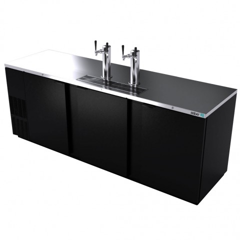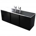 (19073897) Direct Draw Beer Cooler, three-section, 95-1/2"W x 28-5/8"D x 53"H, side-mounted self-contained refrigeration, stainless steel top, stain steel interior, stainless steel floor with removable polymer floor protector, includes: (2) stainless steel draft towers with dual taps, (3) solid doors, (5) keg capacity, electronic controller, temperature range 33° to 38°F, LED interior light, black vinyl exterior, galvanized interior with stainless steel floor, R-290 hydrocarbon refrigerant,1/3 HP, cETLus, ETL-Sanitation, Made in North America