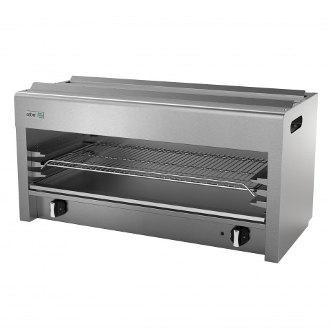 Cheesemelter, gas, 36”W, range or wall-mount, (2) burners, manual controls, (3) position galvanized rack, removable crumb tray, stainless steel front & sides, pressure regulator, 40,000 BTU, cETLus, ETL-Sanitation, CSA, Made in North America