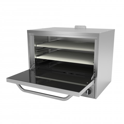 Pizza Oven, gas, countertop, 36"W, (2) ceramic stones adjustable in (3) positions, 200° - 650° F thermostat, automatic shut-off, spark ignition, stainless steel interior with porcelain door & floor, stainless steel front, top & sides, 30,000 BTU, cETLus, ETL-Sanitation, CSA, Made in North America
