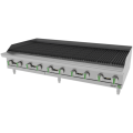 Emerald Line Countertop Gas Radiant Broiler, 60"W x 32"D x 16-1/4"H, (10) flute-type stainless-steel burners, 20,000 BTU/hr per burner (200,000 BTU total), reversible heavy-duty cast iron grates, cast iron radiants, 24" deep cooking area, 4" high 14-gauge perimeter splash guard, integrated grease collection channels, manual ignition with stainless-steel standing pilot lights, Zamak flame control knobs, standard gas regulator, gas conversion kit (NG/LPG), adjustable stainless-steel legs (4–6"), 4" landing ledge, 4" deep grease channel, 1" stainless-steel grease tray, 3/4" gas connection, gas pressure 5” W.C. (NG) / 10” W.C. (LPG), convertible to lava rock,NSF Certified, UL Listed, Made in North America
