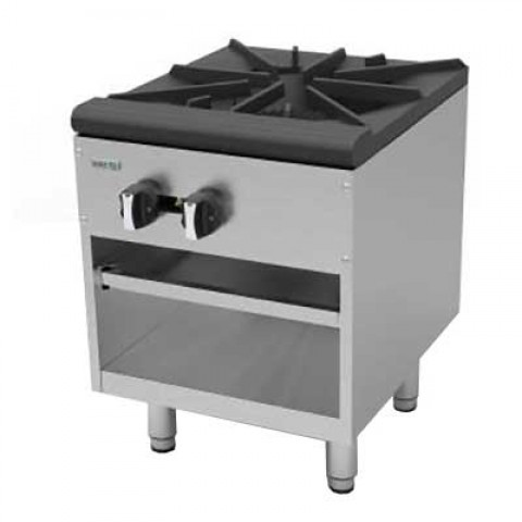 Stock Pot Range, gas, 18”W, (2) manual control valves, (2) 45,000 BTU open burners, removable cast iron grates, removable full width drip pan, open under storage cabinet, stainless construction, 6" adjustable legs, 90,000 BTU, cETLus, ETL-Sanitation, CSA, Made in North America