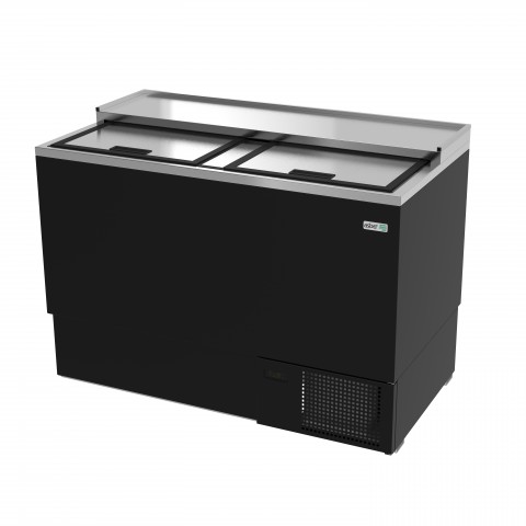(19109637) Glass Froster, 49-5/8"W x 27"D x 35-3/4"H, self-contained refrigeration, , (2) solid slide lids, (6) shelves, (234) 12 oz. mugs capacity, electronic controller, temperature range 0° to -7°F, stainless steel top, galvanized interior with stainless steel floor, black vinyl exterior, R290 Hydrocarbon refrigerant, 1/2 HP, cETLus, ETL-Sanitation, Made in North America