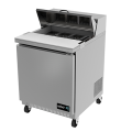 (19095057) Sandwich/Salad Top Prep Table, 27"W x 30"D x 43"H, self-contained refrigeration, (1) solid door, (1) adjustable epoxy coated shelf, includes (6) standard full set of 1/6 size pans & (2) 1/9 size pans (4" deep), insulated lid, 10" removable/reversible white poly cutting board, temperature from 33° to 41°, stainless steel interior & exterior, galvanized back panel, 4" swivel casters (2 with brakes), R-290 hydrocarbon refrigerant, 1/10 HP, cETLus, ETL-Sanitation, Made in North America