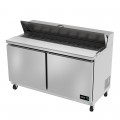 (19095059) Sandwich/Salad Top Prep Table, 60"W x 30"D x 43"H, self-contained refrigeration, (2) solid doors, (2) adjustable epoxy coated shelves, includes (16) standard full set of 1/6 size pans (4" deep), insulated lid, 10" removable/reversible white poly cutting board, temperature from 33° to 41°, stainless steel interior & exterior, galvanized back panel, 4" swivel casters (2 with brakes), R-290 hydrocarbon refrigerant, 1/4 HP, cETLus, ETL-Sanitation, Made in North America