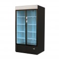 (19112941) Refrigerated Merchandiser, two-section, 47 cu. ft. capacity, bottom mount self-contained refrigeration, (2) sliding glass doors, electronic controller with digital display, temperature range 32 °F to 38 °F, (8) adjustable epoxy coated shelves, LED interior lighting, white interior, black exterior, R-290 Hydrocarbon refrigeration, 4" castors, 1/3 HP, cETLus, ETL-Sanitation, Made in North America