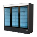 (19086216) Refrigerated Merchandiser, three-section, 72 cu. ft. capacity, bottom mount self-contained refrigeration, (3) glass doors, electronic controller with digital display, temperature range 32 °F to 38 °F, (12) adjustable epoxy coated shelves, LED interior lighting, white interior, black exterior, R-290 Hydrocarbon refrigeration, 4" castors, 3/4 HP, cETLus, ETL-Sanitation, Made in North America