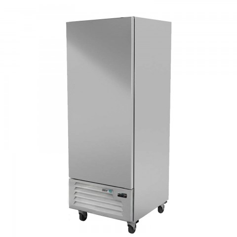(19096935) Refrigerator, reach-in, one-section, 17 cu. ft. capacity, bottom mount self-contained refrigeration, (1) solid field reversible door, digital control, temperature range 32 °F to 38 °F, (3) adjustable epoxy coated shelves, incandescent interior lighting, stainless steel interior, stainless steel front & sides, 4" swivel casters (2 with brakes), R-290 Hydrocarbon refrigeration, 1/4 HP, cETLus, ETL-Sanitation, Made in North America