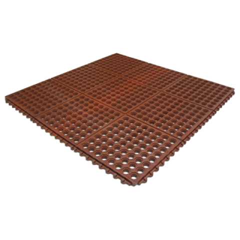 Anti-fatigue Floor Mat, 36" x 36", 1/2" thick, (2) interlocking sides, grease resistant, drainage holes, slip resistant, minimal odor, rubber, red, NFSI certified