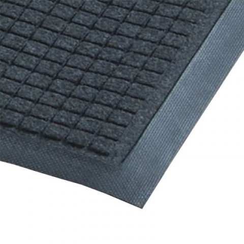 Entrance Mat, 3' x 10', 3/8" thick, square pattern, raised edges, slip resistant, rubber nib backing, polyester fiber, charcoal, NFSI certified