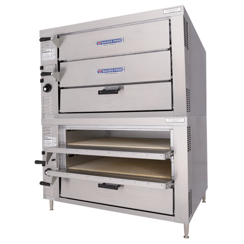 HearthBake Series Oven, countertop, gas, pizza/bake, (2) double compartments, (2) 30"W x 26-1/4"D cordierite decks, 5"H upper deck/6"H bottom deck, center deck removable, (2) doors for each compartment, thermostat 650°F, stainless steel exterior, 4" legs with adjustable feet, 120,000 BTU, CE, cULus, UL EPH Classified