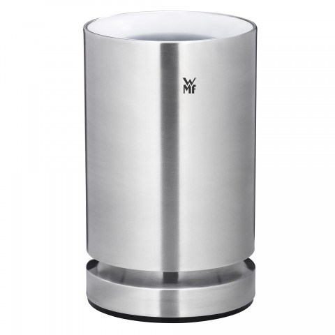 Ambient Champagne & Wine Cooler, 5-3/5" dia. X 9-1/3"H, round, suitable for bottles with diameter up to 3.6", decorative LED lighting at the top and bottom of the wine cool, WMF Easy Touch technology for touch operation of the LED light ring, Includes coolpack, USB connector, stainless steel, Neutral by WMF