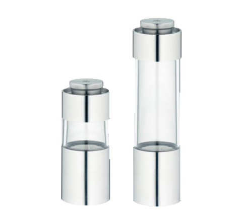 Salt/Pepper Mill, 2" dia. x 4-3/4"H, ceramic grinding mechanism, acrylic cylinder, 18/10 stainless steel top & base, by WMF