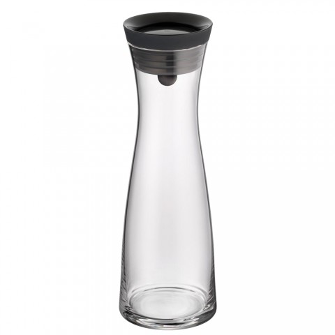 Water Decanter, 33 oz., 18/10 stainless steel CloseUp lid with black ring, silicone stopper, glass, by WMF