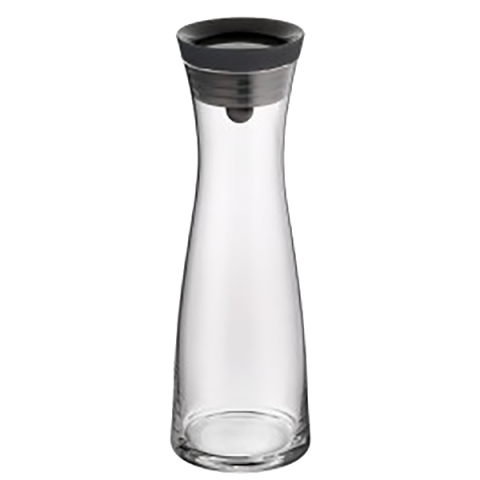Water Decanter, 33 oz., 11-3/8"H, 3" dia., Cromargan® 18/10 stainless steel CloseUp lid with black ring, glass, Basic by WMF