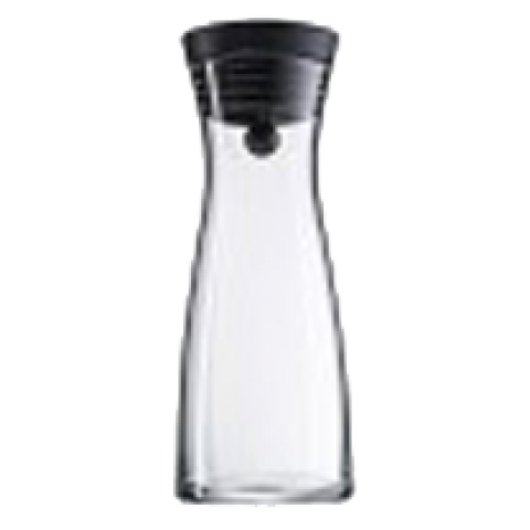 Water Decanter, 25-2/5 oz., 18/10 stainless steel close up lid with black ring, silicone stopper, glass, by WMF