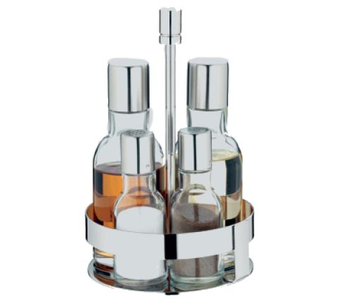 Oil/Vinegar Set, includes: 5-1/2" dia. x 8-1/2"H stand, 6.96 oz., oil/vinegar bottle & 4-1/4"H salt/pepper shaker, Pure by WMF