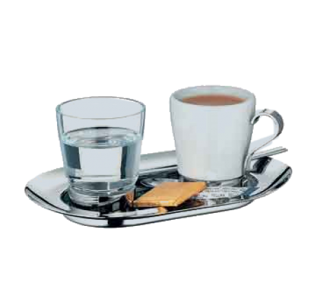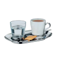 Espresso Set, includes: (6) 7-1/2" x 4-3/4" 18/10 stainless steel trays, (6) 3.2 oz. small porcelain cups, (6) small 18/10 stainless steel handles, (6) 3.2 oz. small glasses, (6) small 18/10 stainless steel rings & (6) small 18/10 stainless steel spoons, CoffeeCulture by WMF