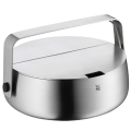Bar Sugar Bowl, 5-3/4" dia. x 3-1/3"H, with handle, tilt lid, with spoon recess, Cromargan® 18/10 stainless steel, matt finish, Barista by WMF