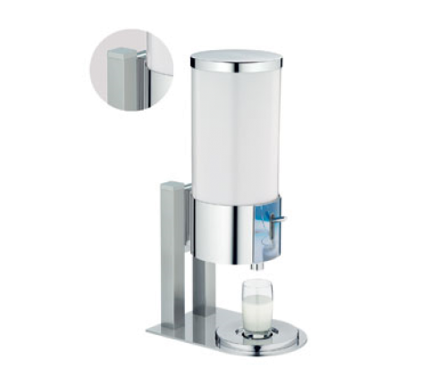 Milk/Beverage Dispenser, 227-1/2 oz. (without ice tube), 12" x 8" x 20-1/2", adjustable height, 18/10 stainless steel top & base, SAN plastic cylinder, partly satin finish, opaque white, Manhattan by WMF