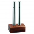 Salt/Pepper Set, 5-15/16"H, stainless steel canister, wood base, by WMF