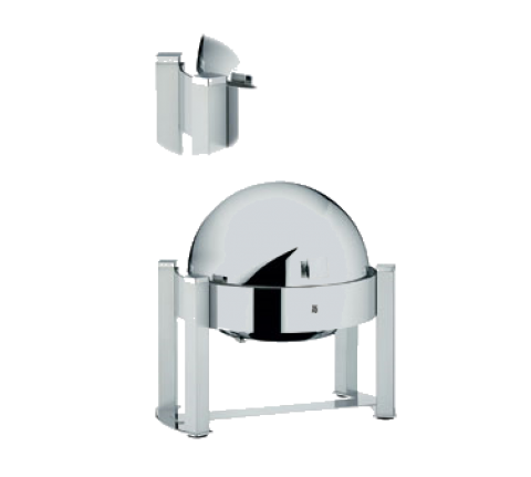 Chafing Dish, 17" dia. x 18"H, full roll top immersible cover, 4-cornered handle & feet, fits inserts up to 4" deep, electric & sterno heating, 18/10 stainless steel, partly satin finish, Manhattan by WMF
