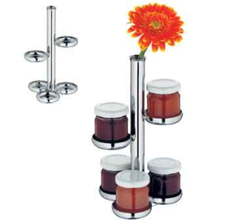 Jam Stand, 7-3/4"H, 2-tier, 5-sections, middle flower vase, 18/10 stainless steel, by WMF