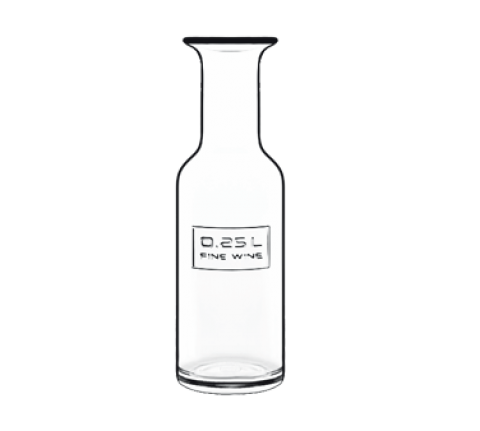 Wine Serving Bottle, 8-1/2 oz. (9-1/2 oz. brimful), 2-1/4" dia. x 7-3/4"H, embossed with CE gauge mark reflecting 1/4 liter capacity, safe edge rim, glass, Optima® by Luigi Bormioli