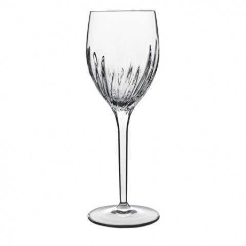 White Wine Glass, 9.25 oz., 3" dia. x 8-1/4"H, etched bowl design, titanium reinforced, machine-blown SON.hyx® lead-free crystal glass, Incanto by Luigi Bormioli