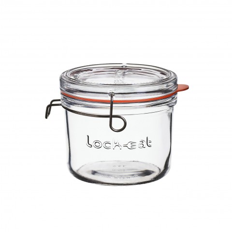 Food Jar, 17 oz., 4-3/4" dia. x 4-1/8"H, round, with lock, glass, clear, Lock Eat by Luigi Bormioli