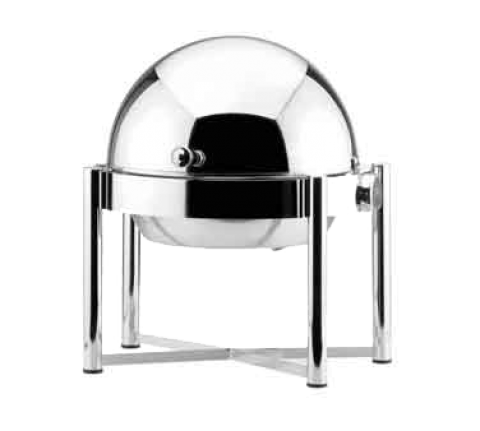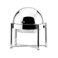Chafing Dish, 11-9/11" dia. (300mm) x 17-11/16" W (450mm) x 18-7/8"H (480mm), full roll-top lid, with burner holder, stackable, stainless steel insert included, for burner or electrical heating, 18/10 stainless steel, Exclusive by Hepp (electrical heating & porcelain inserts sold separately)