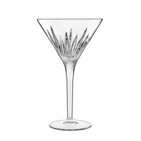 Martini Glass, 7.25 oz., 4-1/8" dia. x 6-1/3"H, etched design, dishwasher safe, lead-free crystal glass, Mixology by Luigi Bormioli (Core collection)