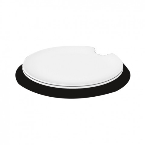 Plate, 11" dia., round, with cut-out bite, porcelain, white, by Tassen