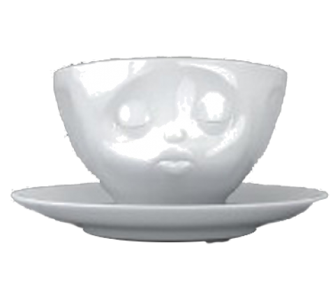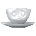 Cup, 6.6 oz., 5-3/4" dia. (incl. handle) x 2-3/4"H, embossed kissing face, porcelain, white, Expressive Faces by Tassen (use with saucer 143000)