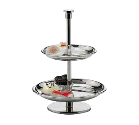 Pastry Stand, 6-3/8" dia. (162mm) x 8-11/16"H (220mm), 2-tier, 18/10 stainless steel, silver plate finish, Profile by Hepp