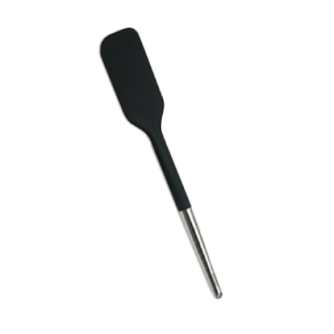 Spatula, 11-13/16"L, heat resistant up to 482°F (250°C), dishwasher safe, platinum-silicone head, stainless steel handle, black, Perfect by Kaiser