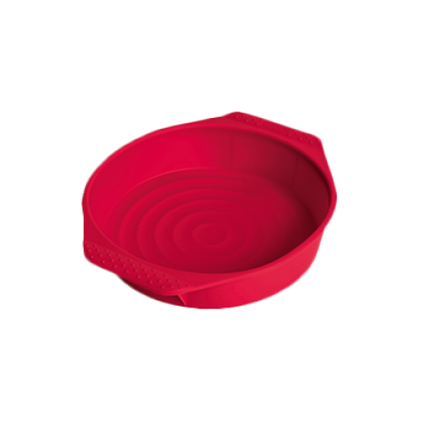 Cake Pan, 10-1/4" dia., round, oven/microwave/freezer safe, -40° F to 500° F temperature range, non-stick, platinum-silicone, red, Flexo by Kaiser