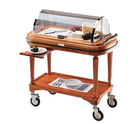 Cheese Trolley, 40-9/16"L (1030mm) x 21-1/4"W (540mm) x 41-3/4"H (1060mm), roll top plexi-glass lid, sliding shelf, artificial marble plate, natural wood, Elegance by Hepp